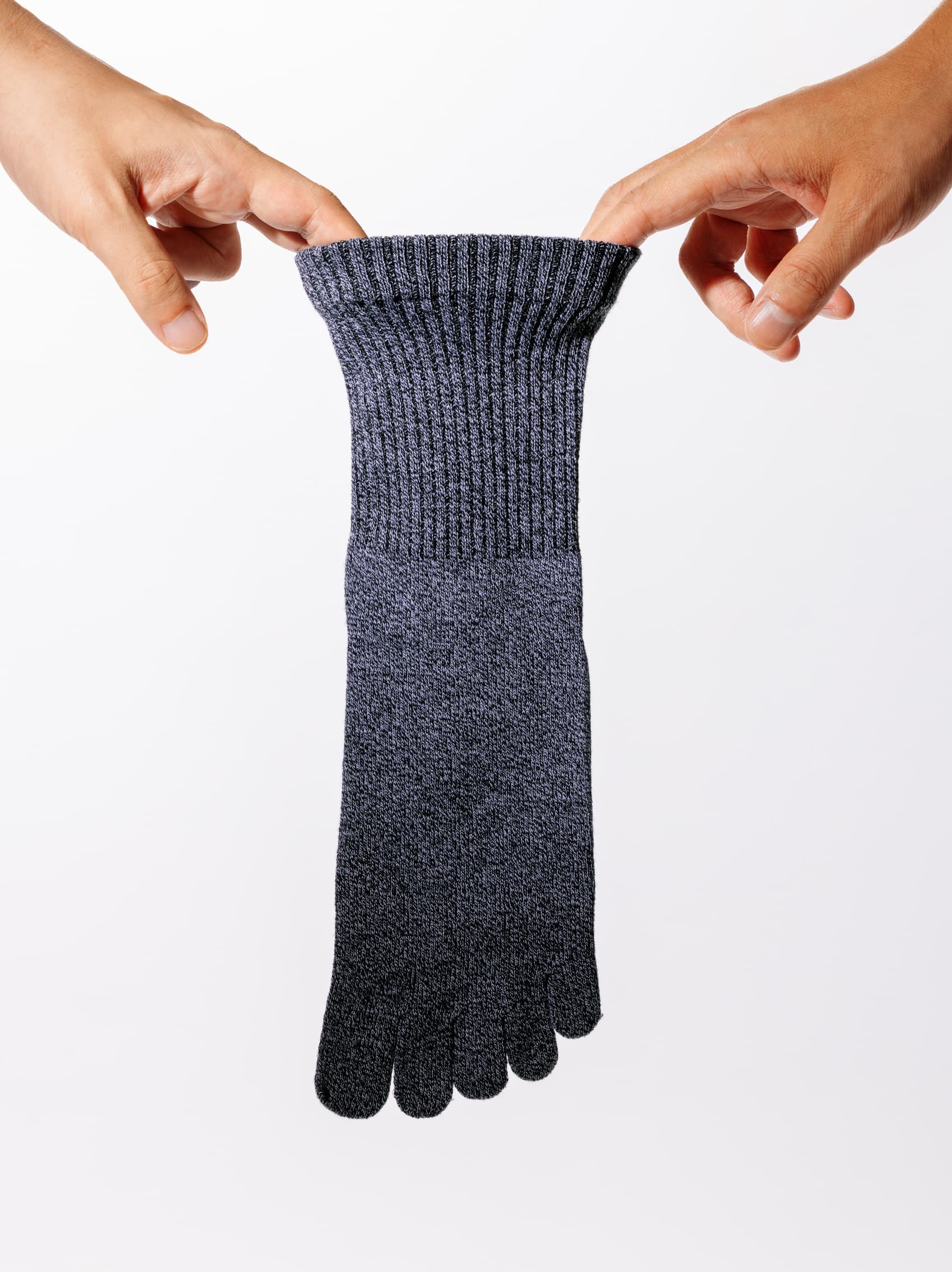 「ゴムゆる」は、タビオを代表するロングセラー。その名の通り、ゴム糸を一切使わずに自然なフィット感をつくり出している。独自特許を持つニッター社の編み方が、履き口にゴムを使わずともズレ落ちを防ぎ、足をやさしく包み込む。誕生のきっかけは、“毎日履きたくなる五本指ソックスをつくりたい”という純粋な願い。実用性と履き心地の両立を追い続けた結果、 十数年を経てもなお支持され続ける定番へと育った。