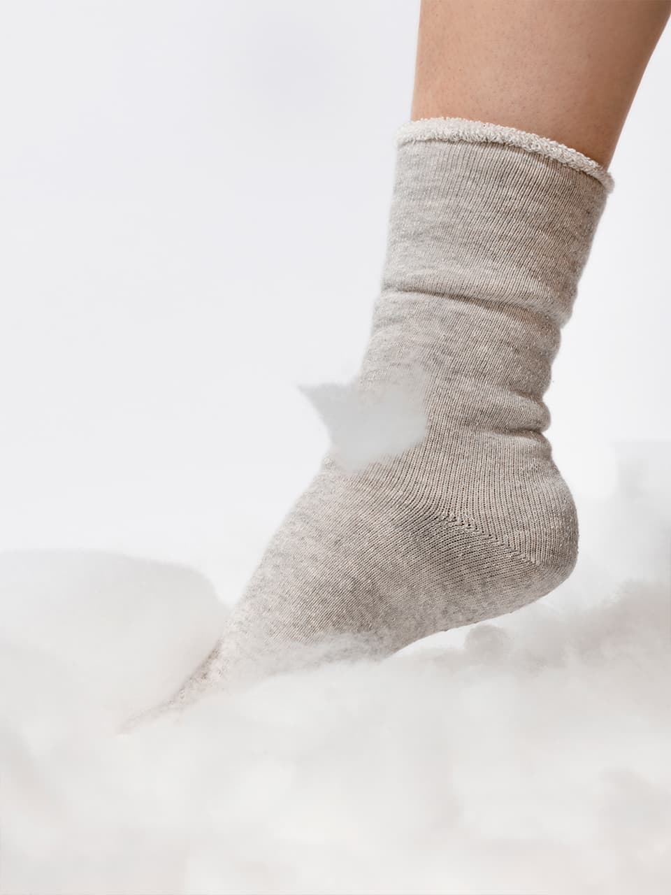 この構造が、スウェットのように“ふっくら”しながらも、踏み込んだ時にしっかりと返ってくる弾力性を実現しています。ふわふわの甘さでも、もこもこの重たさでもない。“タフで、心地いい”という、これまでのルームソックスにはなかった新しい感覚。